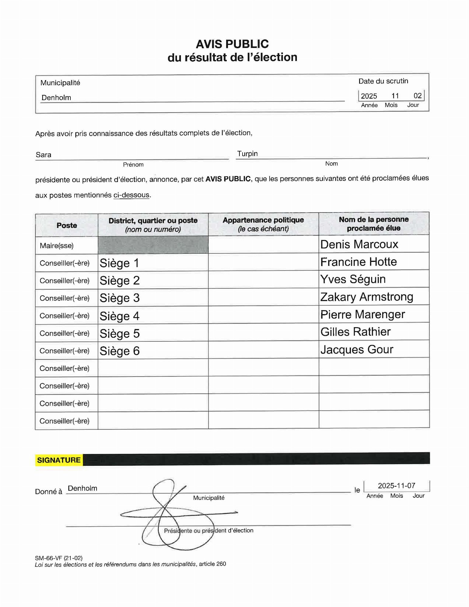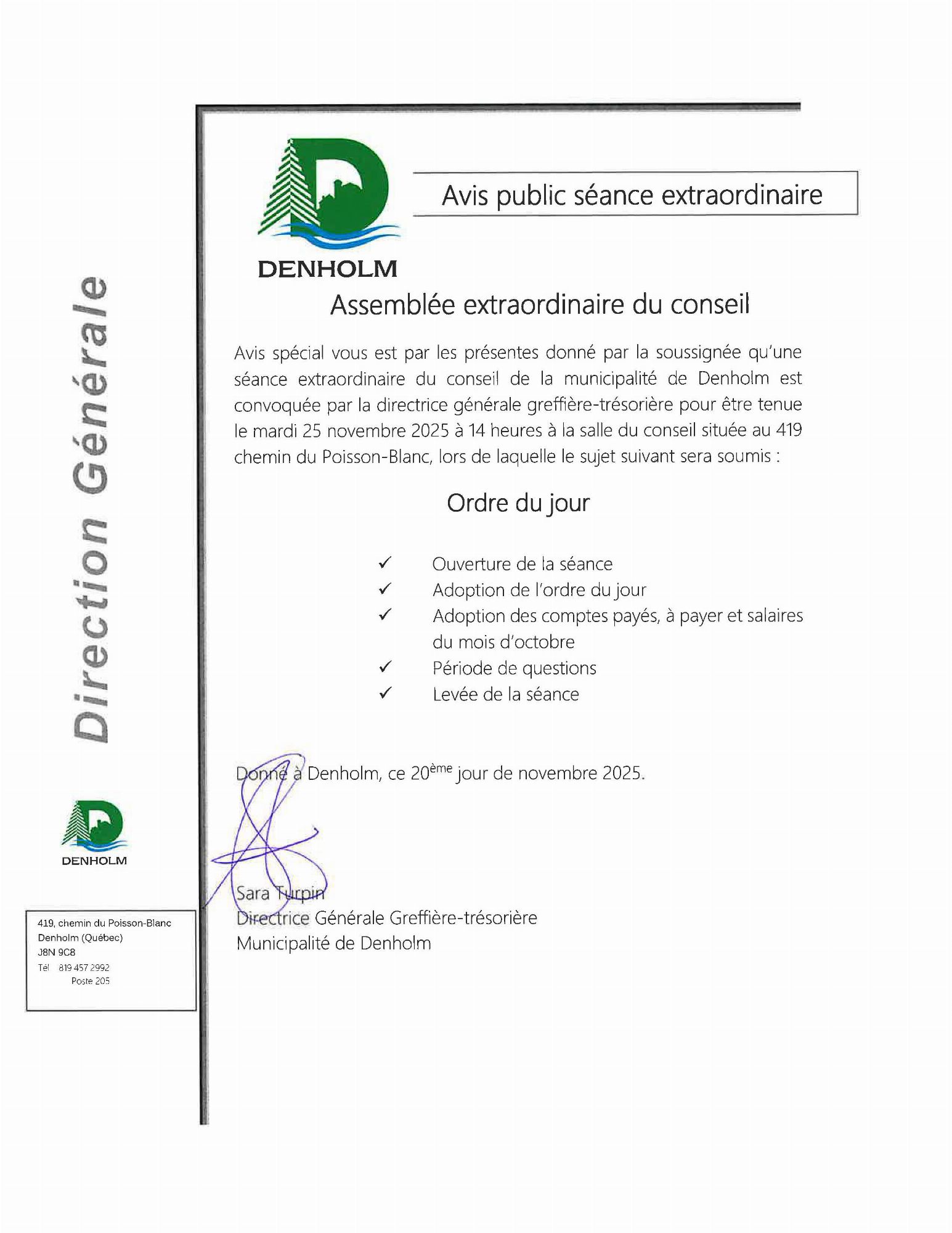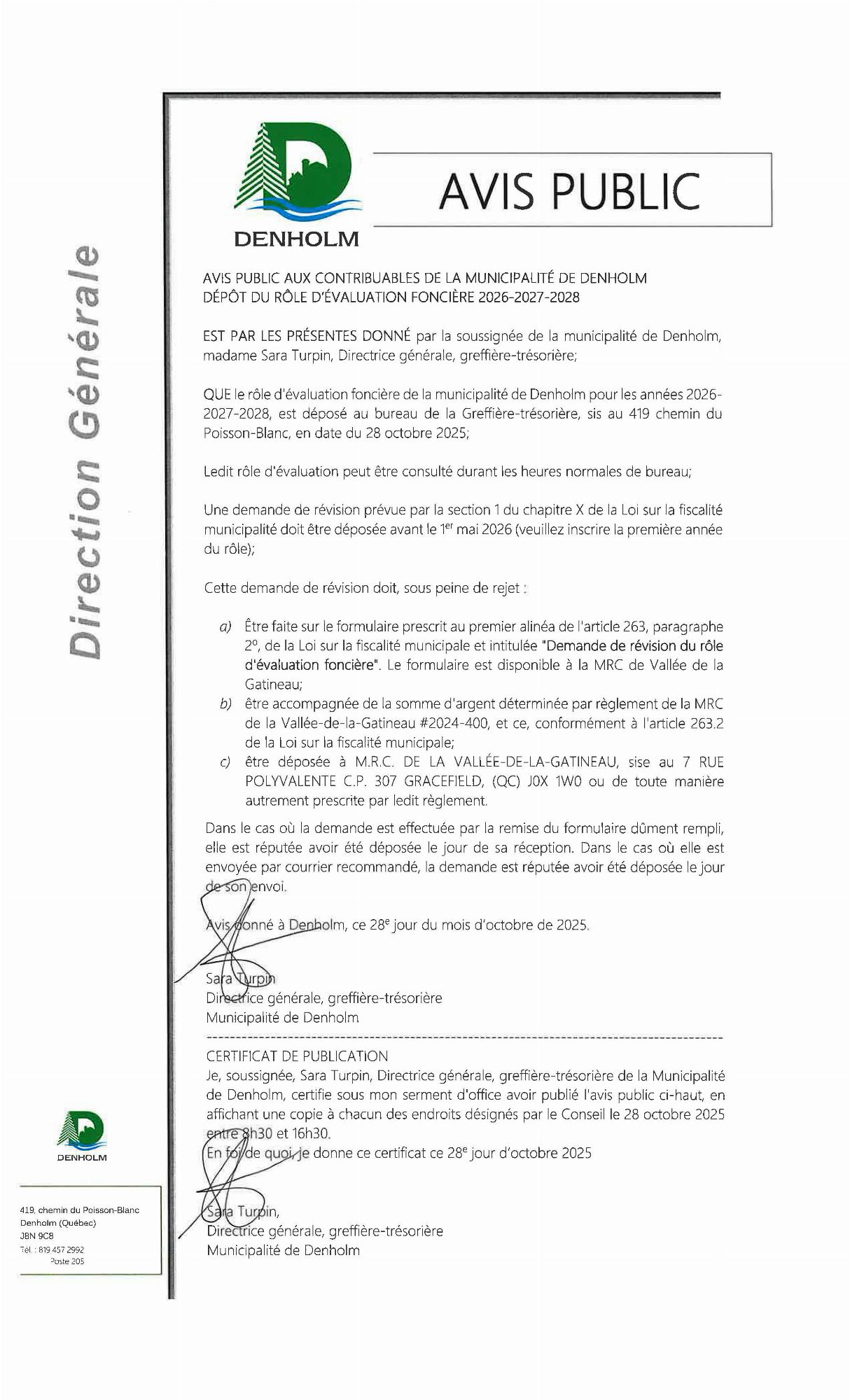 La municipalité publie des avis publics afin d'informer la population.